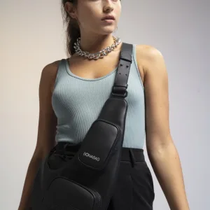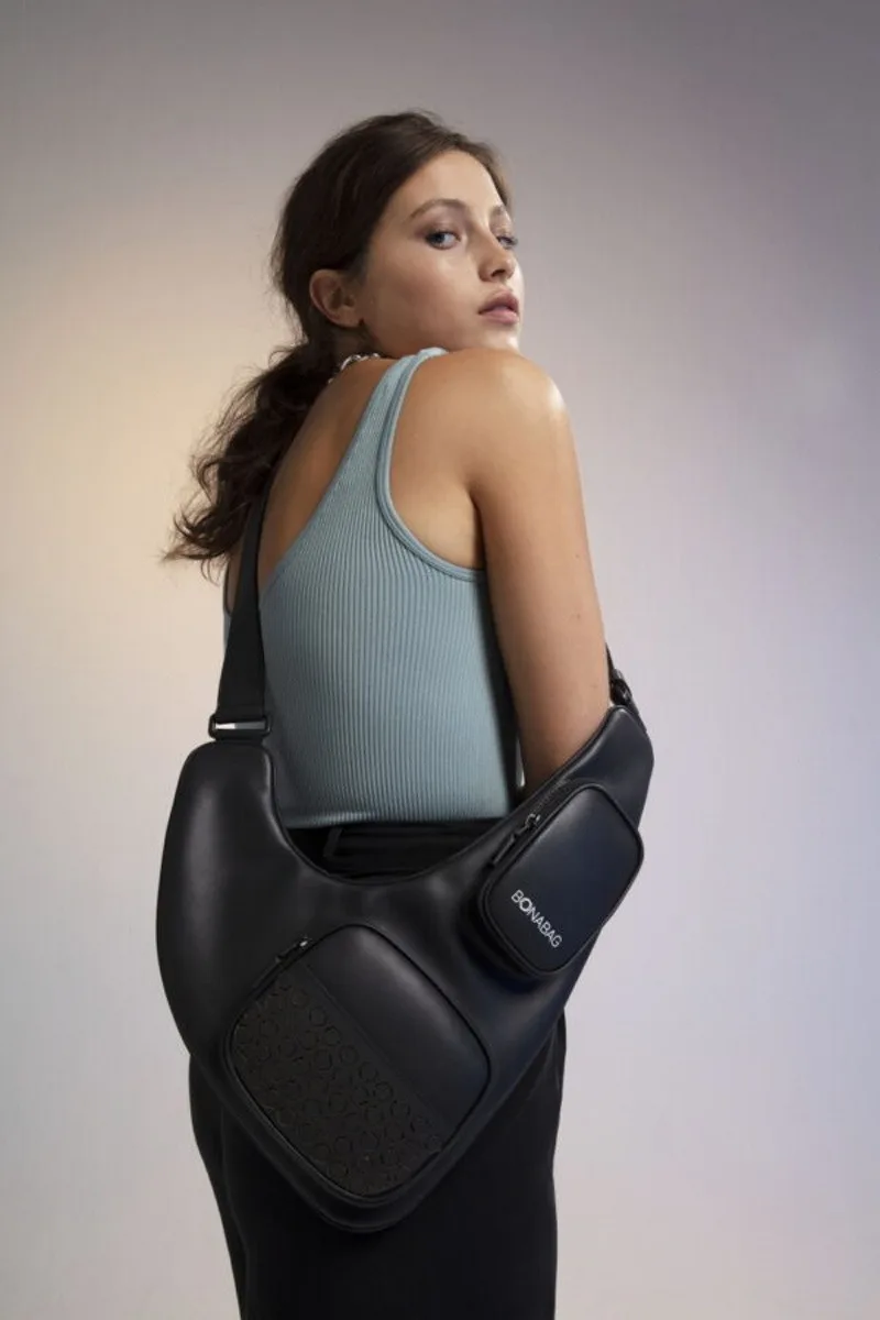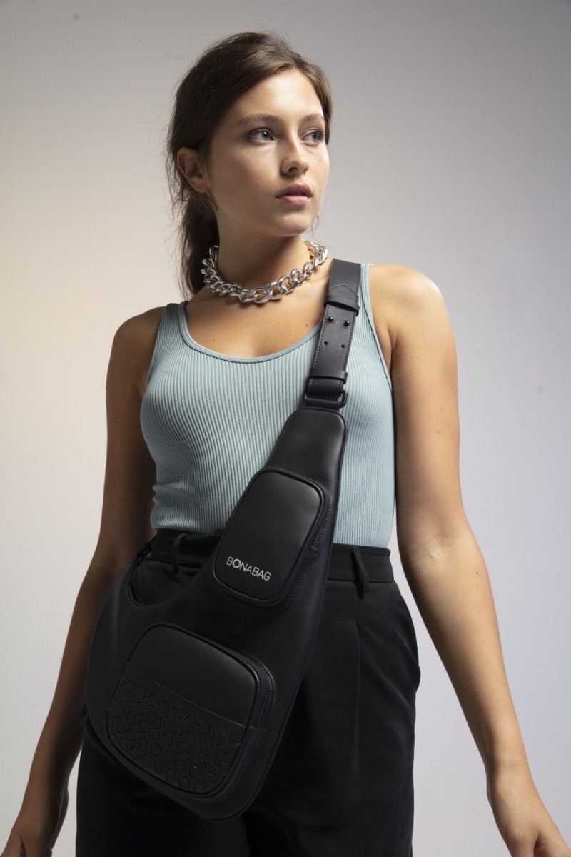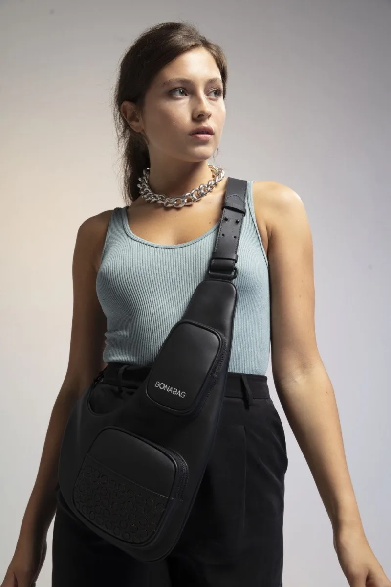 Best buddy of daily life. Comfortable body bag with an elegant effect. Handcrafted with a laser-cut flexi pocket.