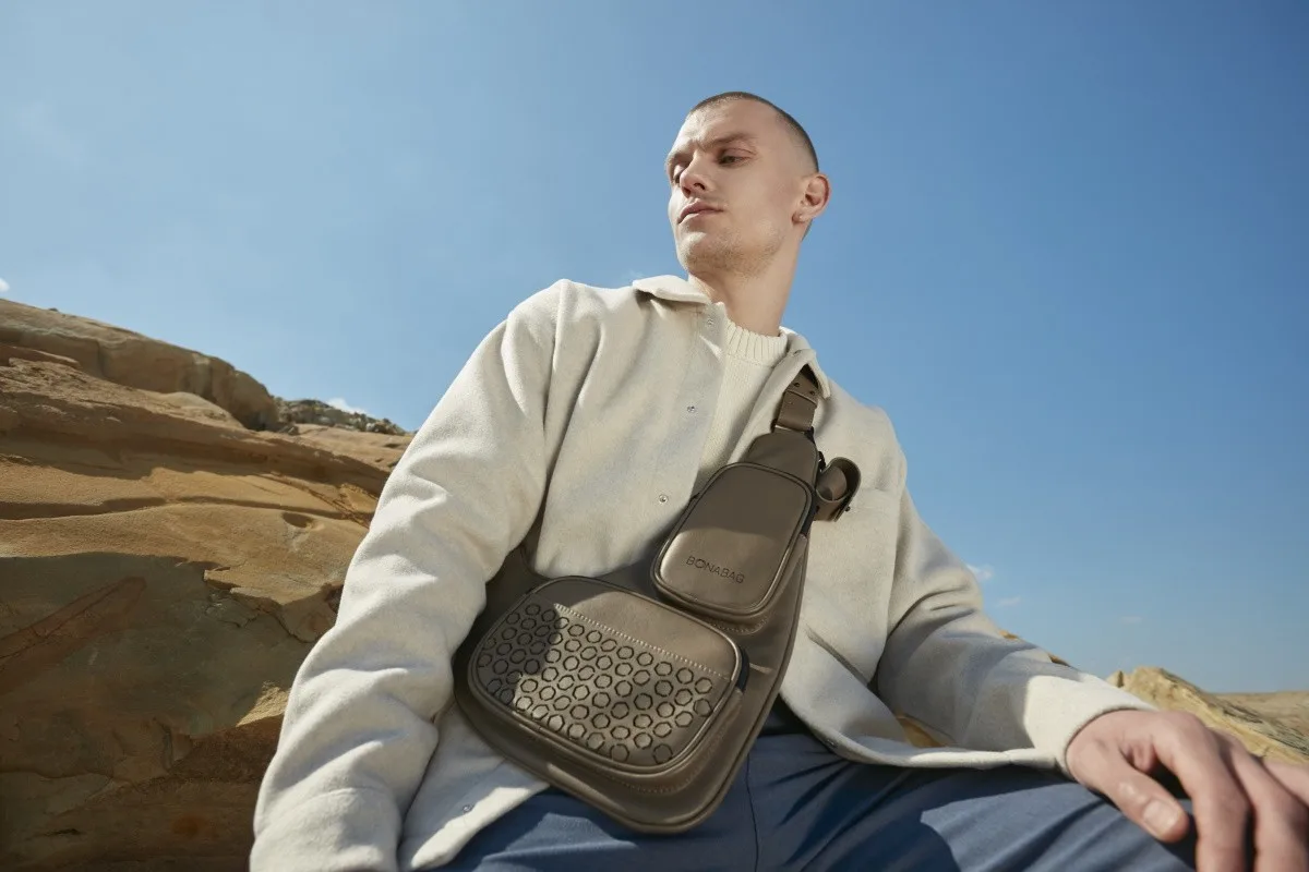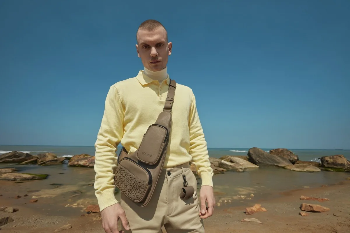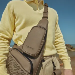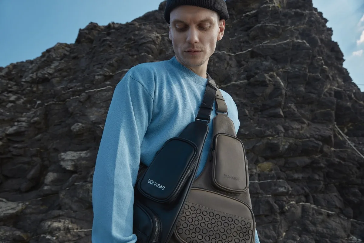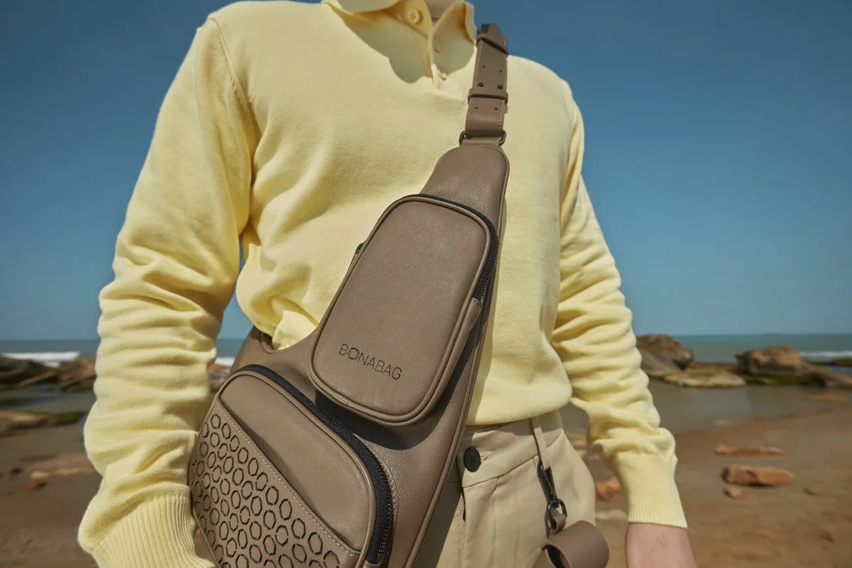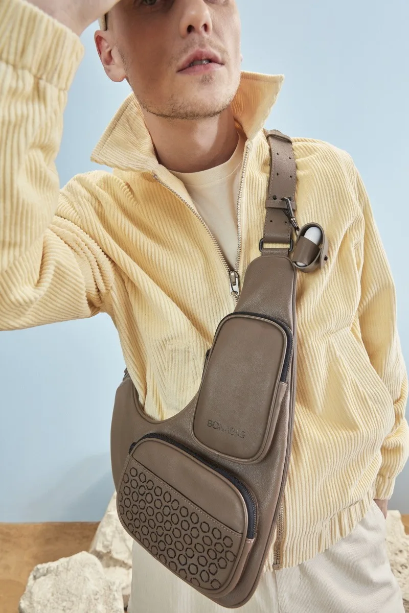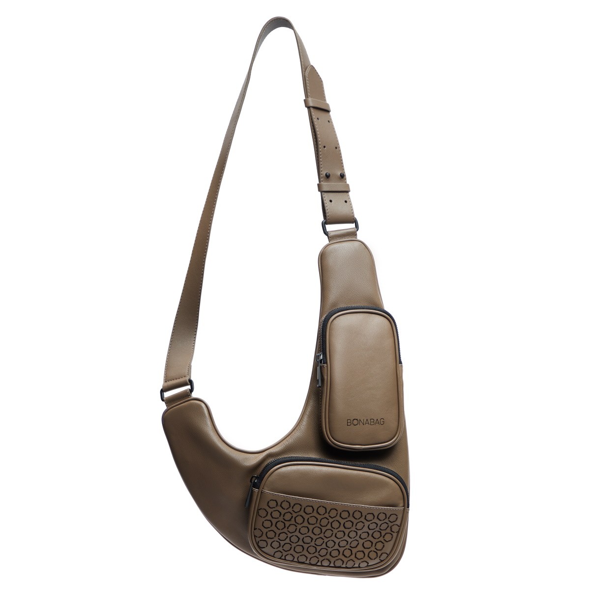 Best buddy of daily life. Comfortable body bag with an elegant effect. Handcrafted with a laser-cut flexi pocket.