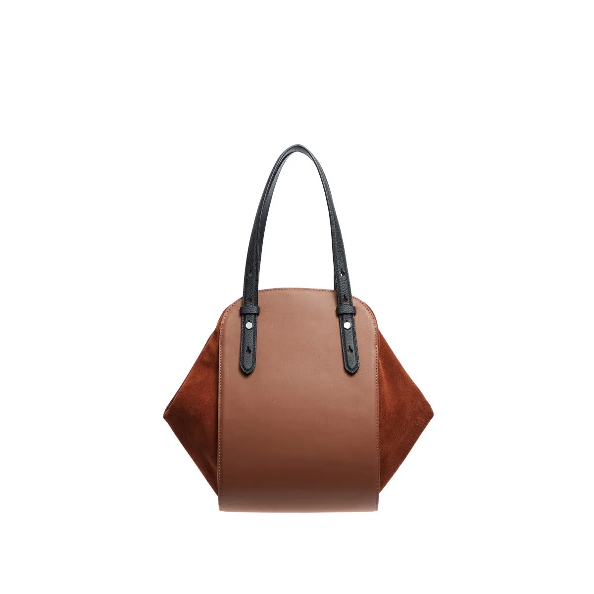 All about pureness. Vertical rectangular geometric figure. Rolled shape. Soft feeling, suede details. Suitable to use as both shoulder bag and backpack.