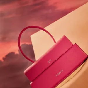 Leather: Fuchsia Grainy, Hardware: Matte Silver, Lining: Red